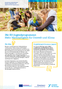 Informationen zum Schwerpunkthema Umwelt und Bekämpfung des Klimawandels in Easmus+ Jugend bzw. Ökologische Nachhaltigkeit und Klimaschutz im Europäischen Solidaritätskorps